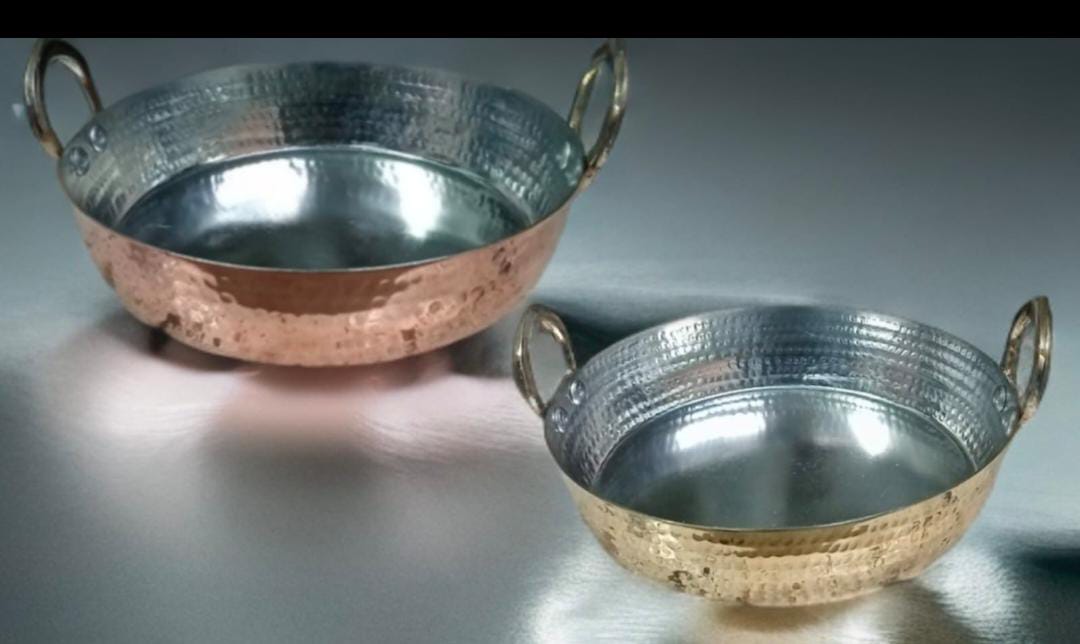 1 Copper Kadhai And 1 Brass Kadhai