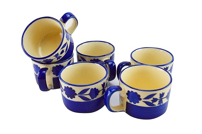 Ceramic Cup With Blue Floral Design-150 ml | Set of 6