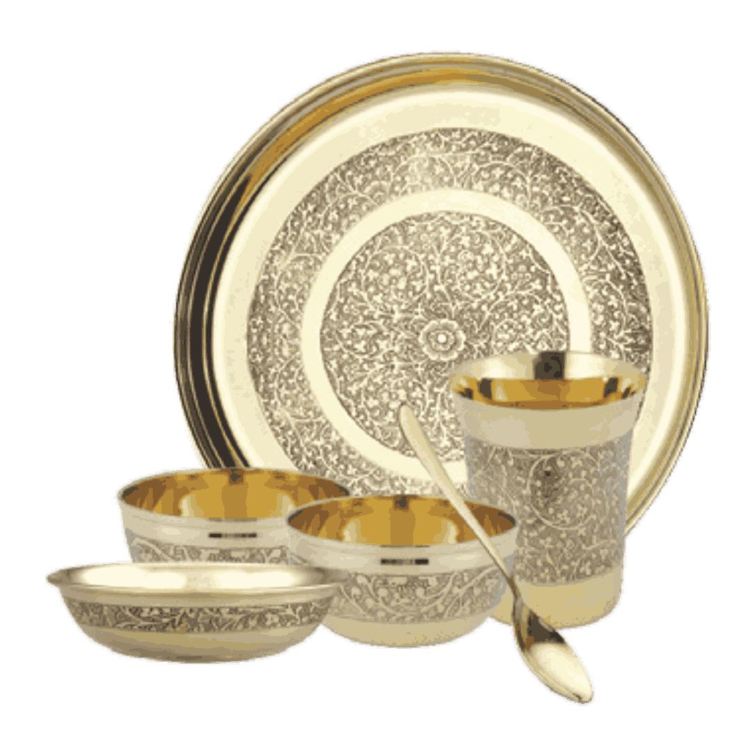 Pure Brass Dinner Set – 7 Pieces Thali