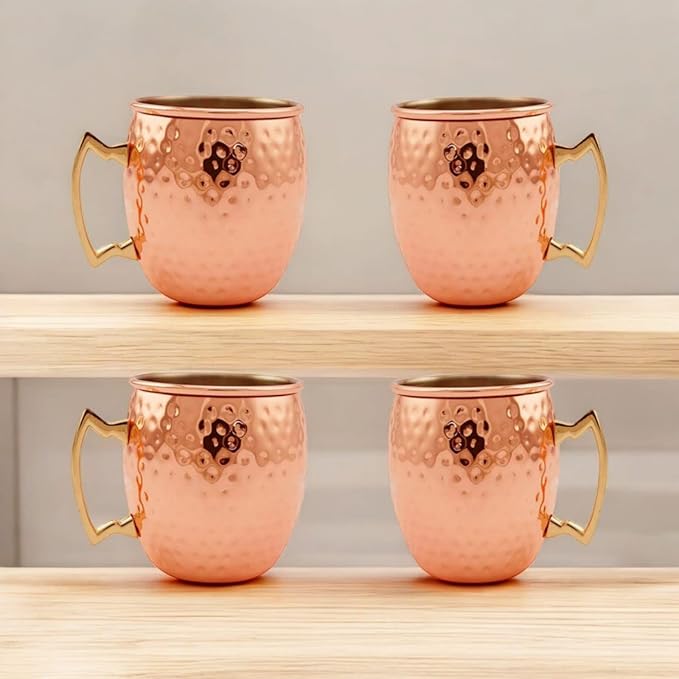 Pure Copper Hammered Mug Drinkware (Set Of 4) | 400ML