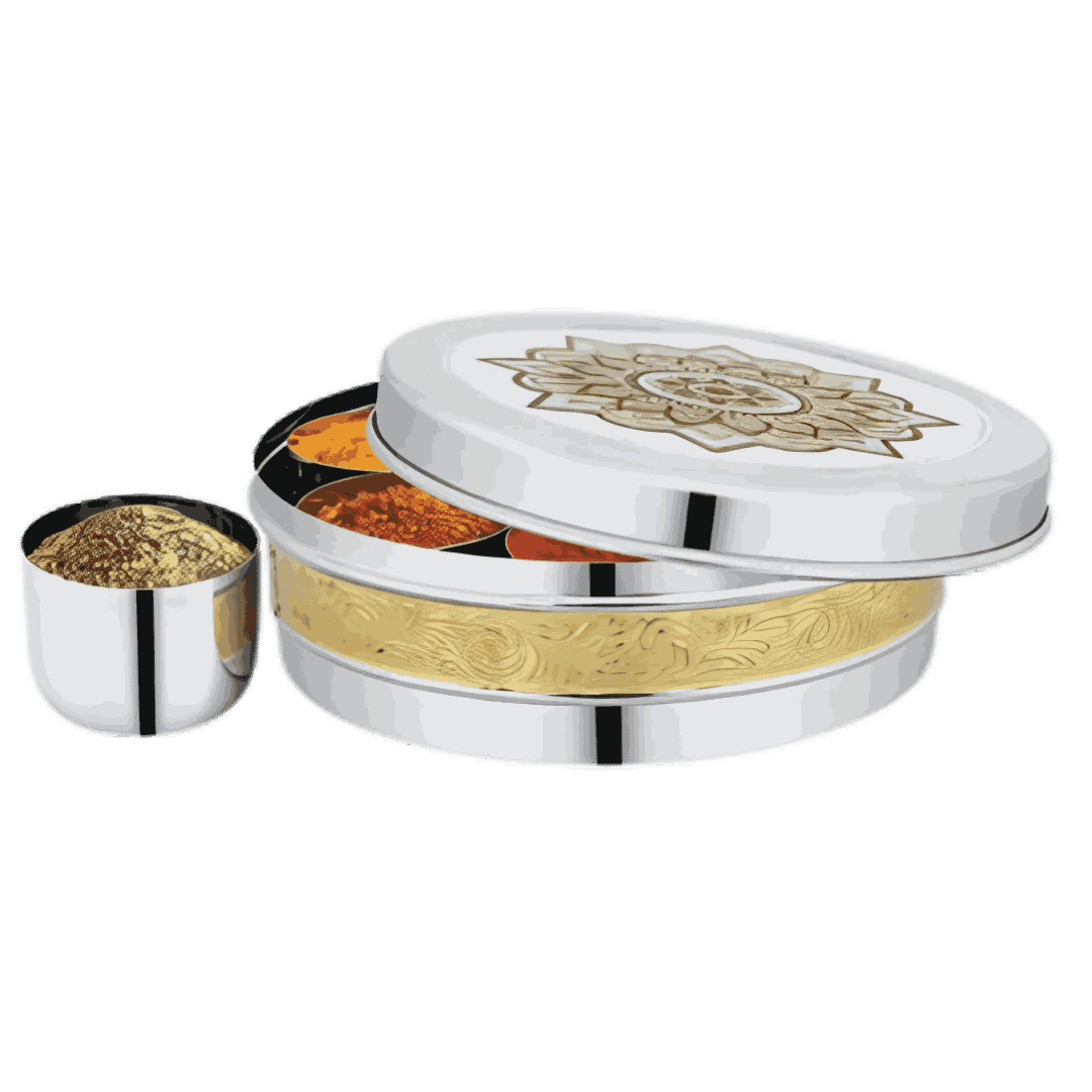 Stainless Steel Round Spice Box With Copper Strip