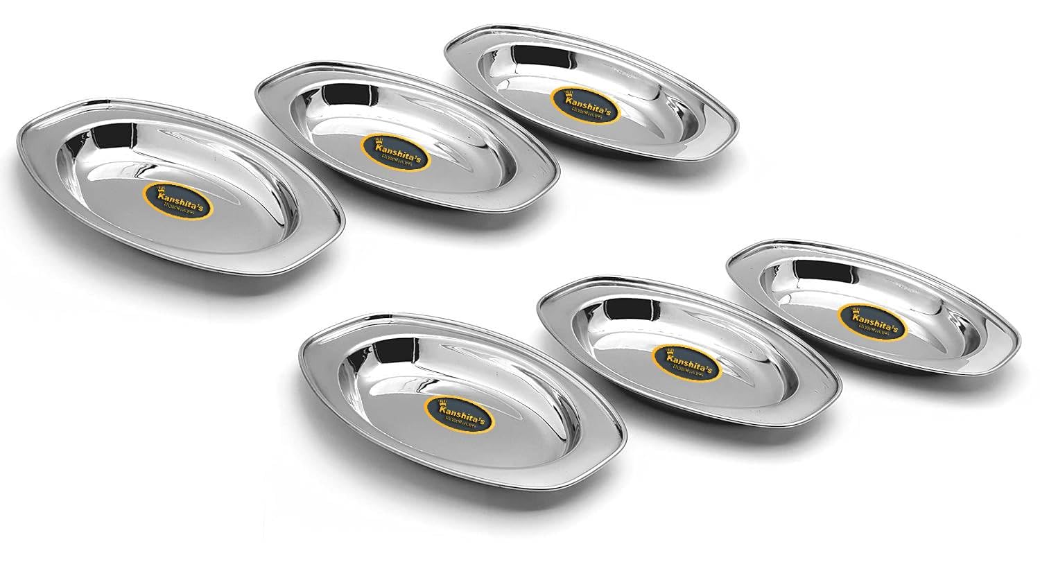 Stainless Steel Serving Oval Plate | Set Of 6