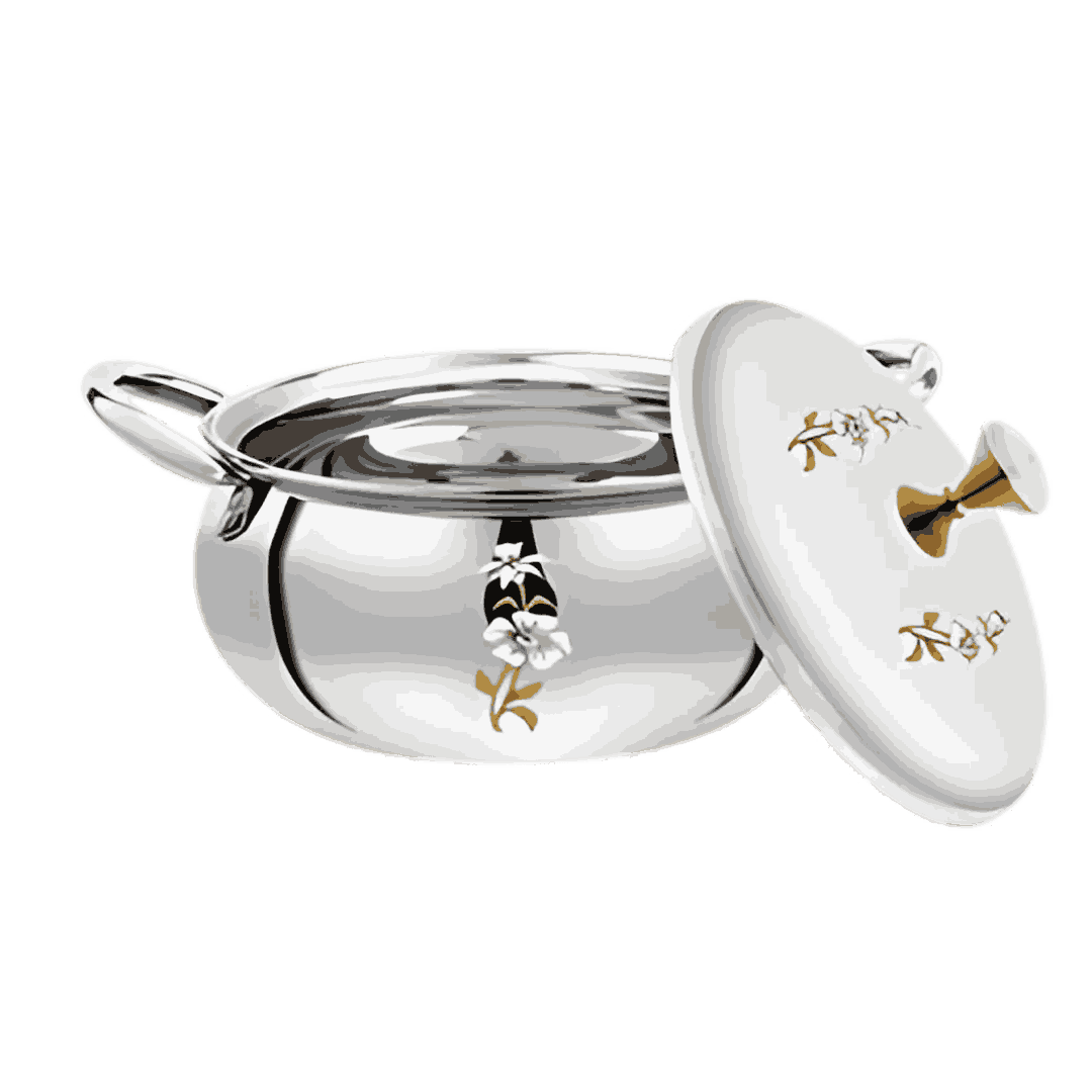 Steel Serving Bowl | Parrot Donga | Floral Design